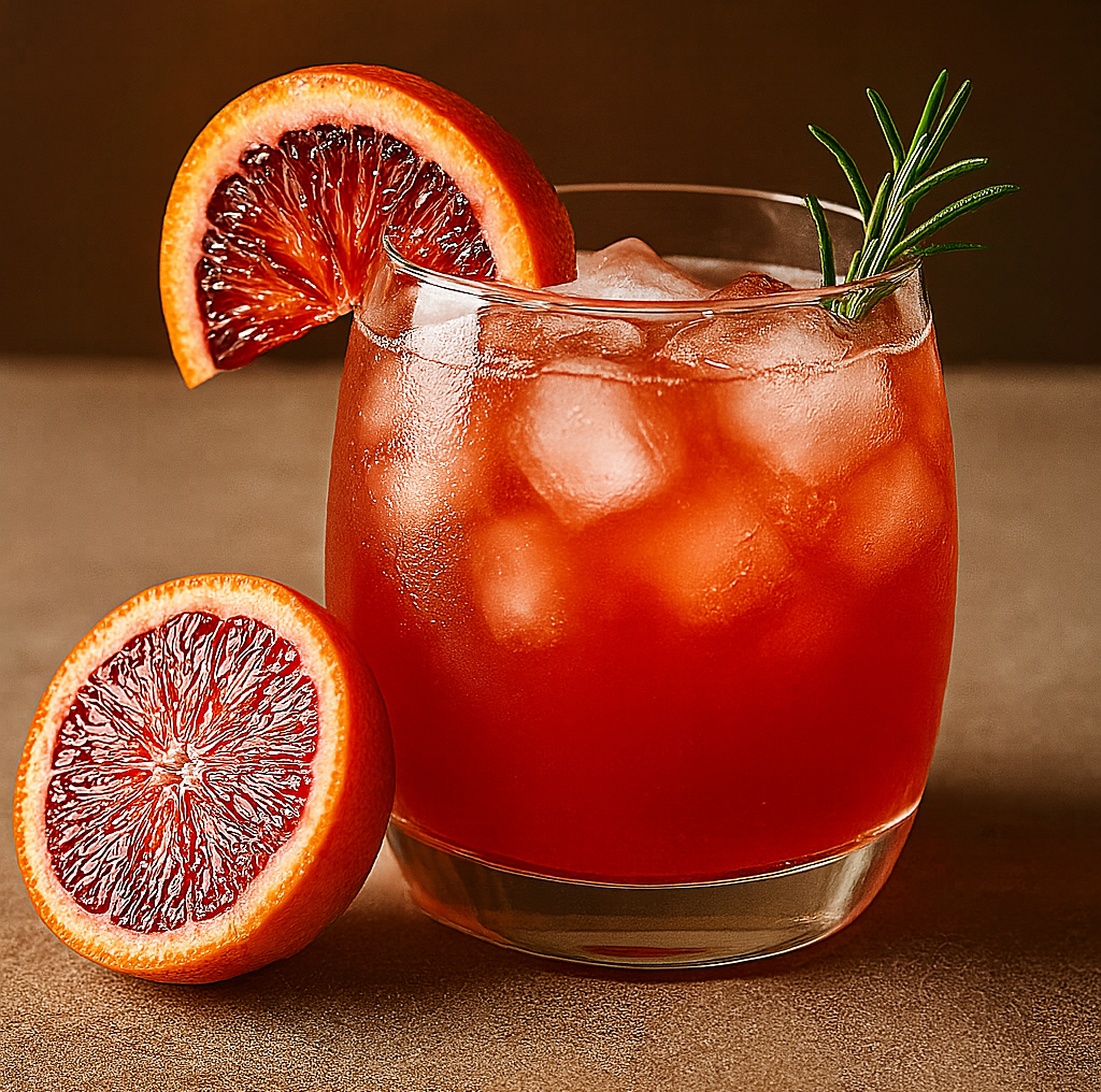 A Blood Orange ROCK IT Vodka cocktail is a striking, ruby-hued drink that perfectly balances sweet, tart, and herbaceous notes.